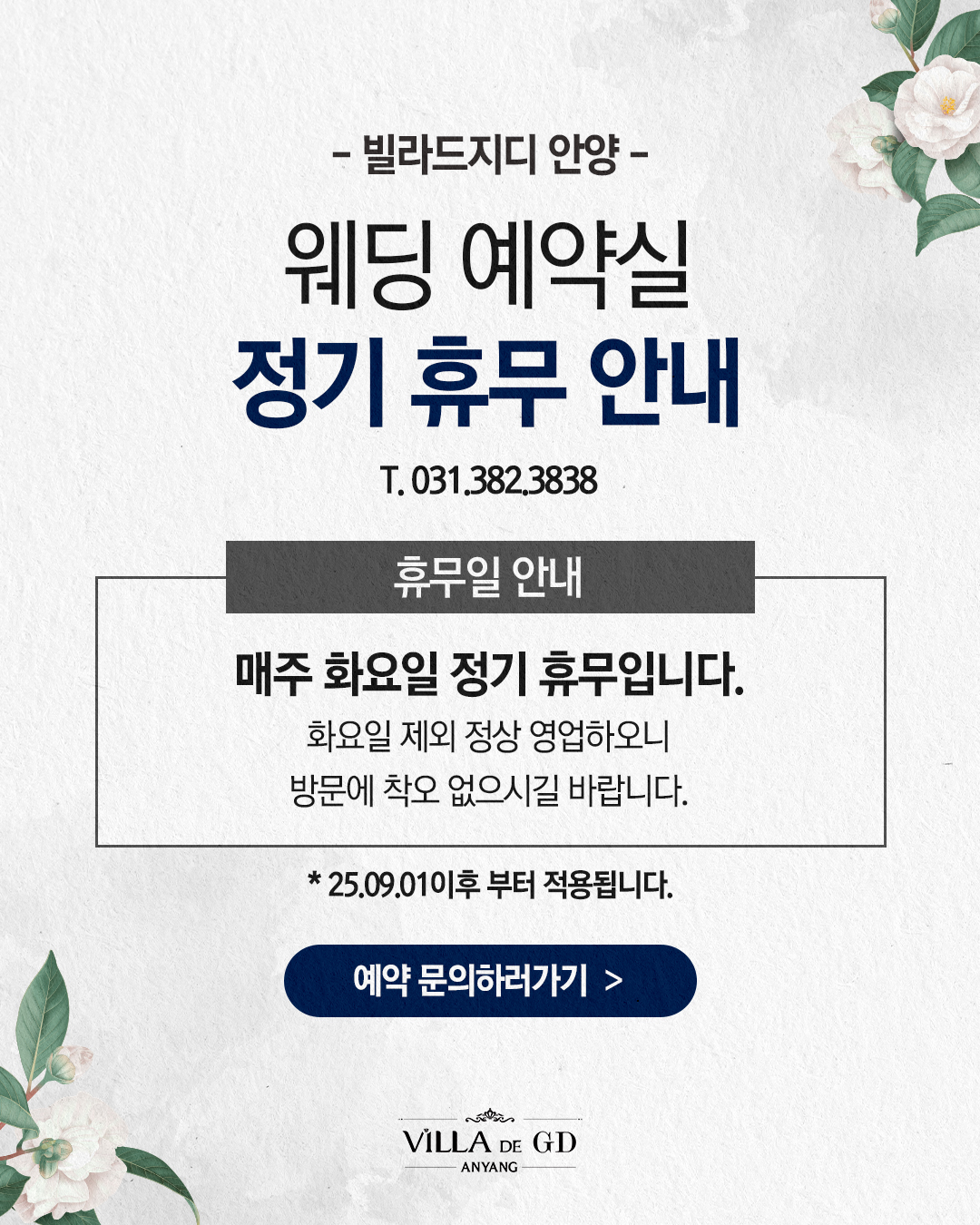 새롭게 선보이는 웨딩베뉴, 빌라드지디 안양